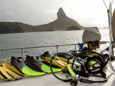 Séchage du matou de plongée à Fernando de Noronha - Brésil.