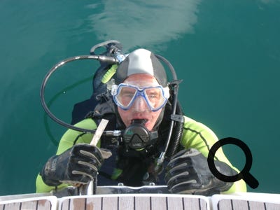 Petit carénage de l’hélice d’un bateau-copain avant de partir au Cap Vert.