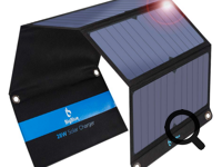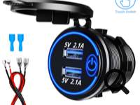 Prise 12V>5V + batterie externe + panneau solaire 5V.