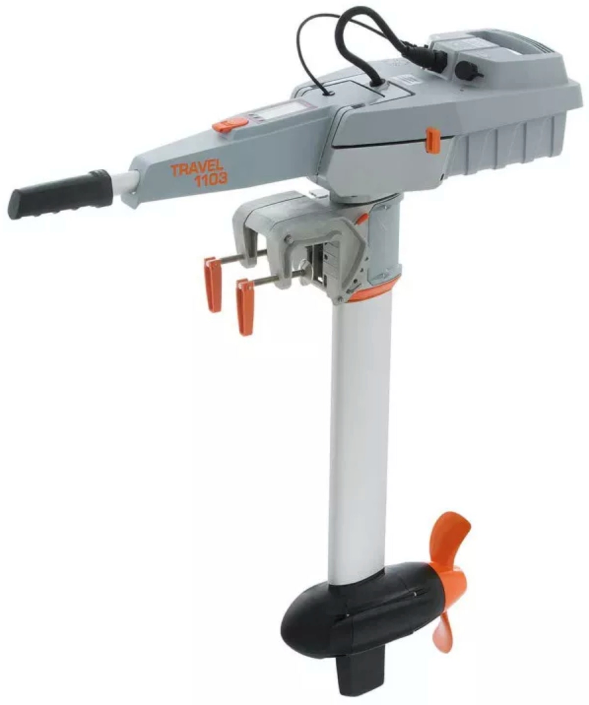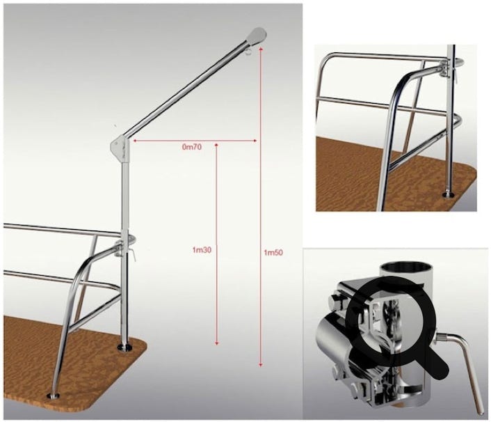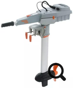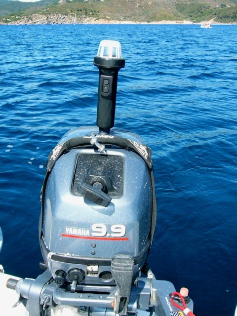 Moteurs sous housses, cadenassés et enchaînés. Au centre palan replié pour manipuler le 10 CV de 40 Kg.