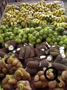 A Belém, au marché, les filets de fruits sont tous au même prix