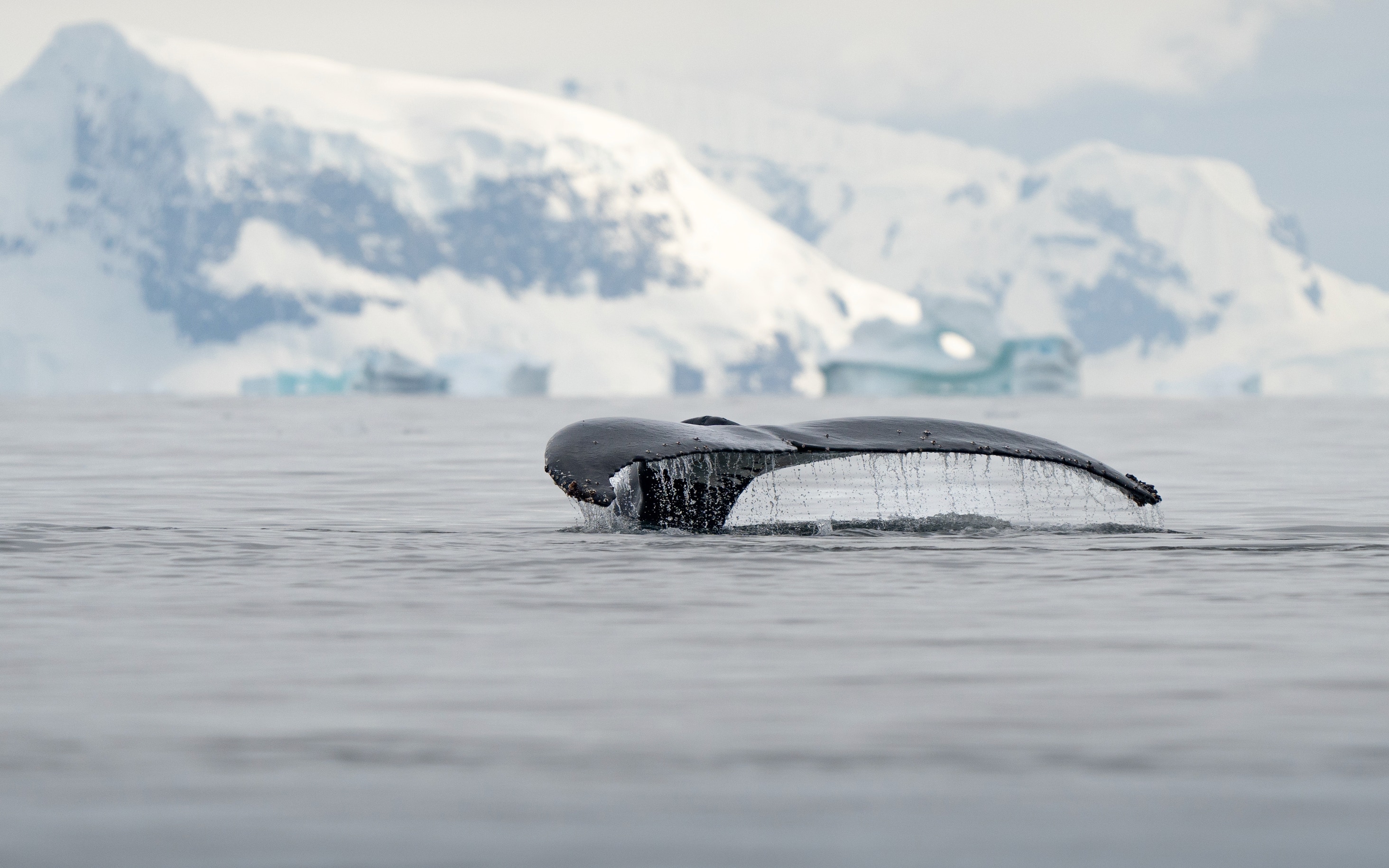 Absolument merveilleux, le lent plongeon de la baleine à bosse (Photo S.Roux - Péninsule Antarctique).