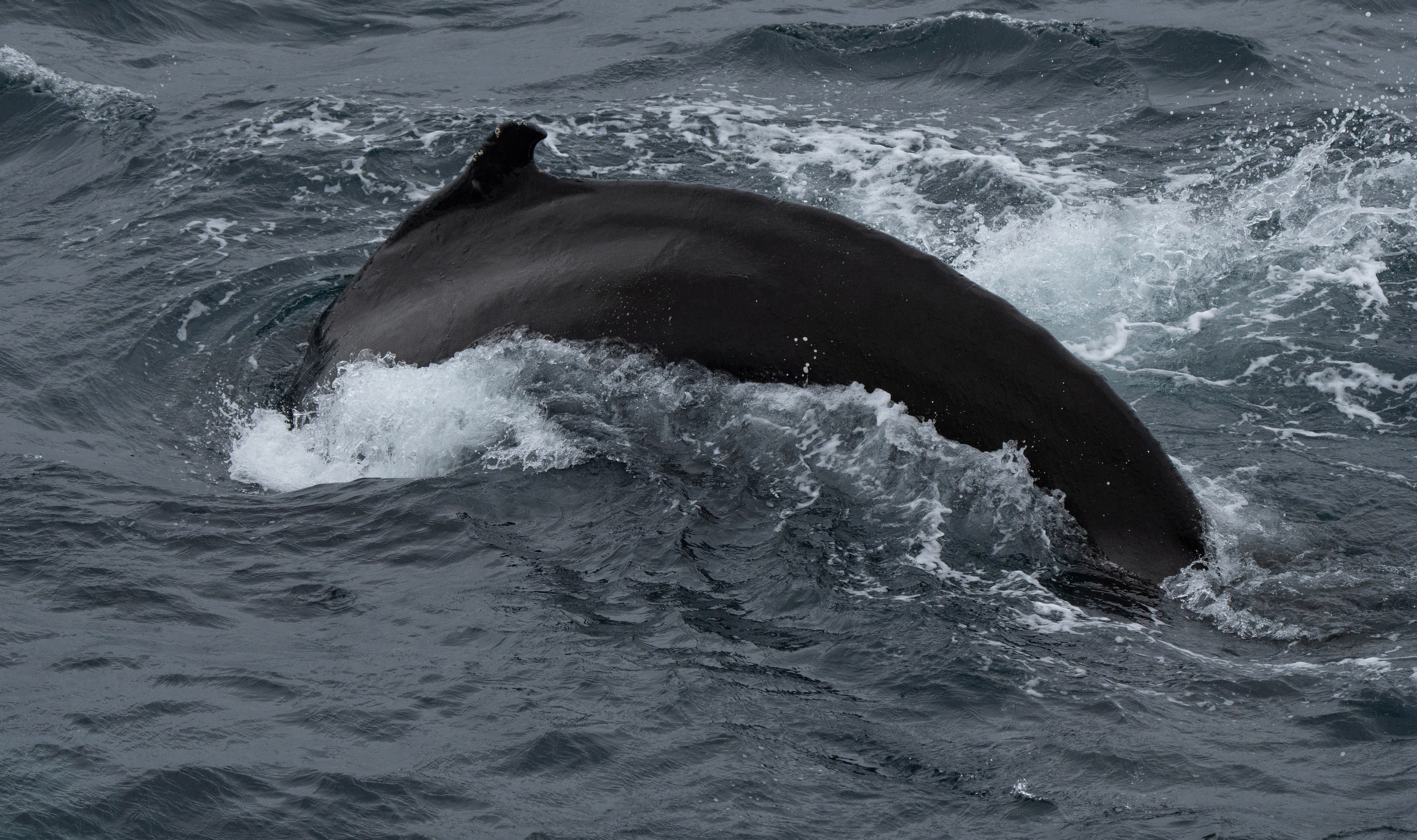 Baleine à bosse car elle cambre énormément sons dos en plongeant ce qui apparait en surface comme une… bosse (Photo S.Roux - Péninsule Antarctique).