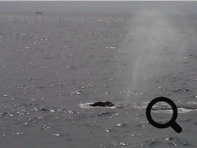 Essentiellement par le jet d’eau et d’air qui fuse au-dessus de leur évent lorsqu’elles expirent. Ce spray (voir image dans la marge de gauche) est repérable d’assez loin. La forme de ce spray peut donner une indication sur son espèce. Le rorqual commun à un jet assez cylindrique et vertical, celui d’une baleine à bosse est vertical mais plus évasé sur le dessus. Ceci est observable sans vent…