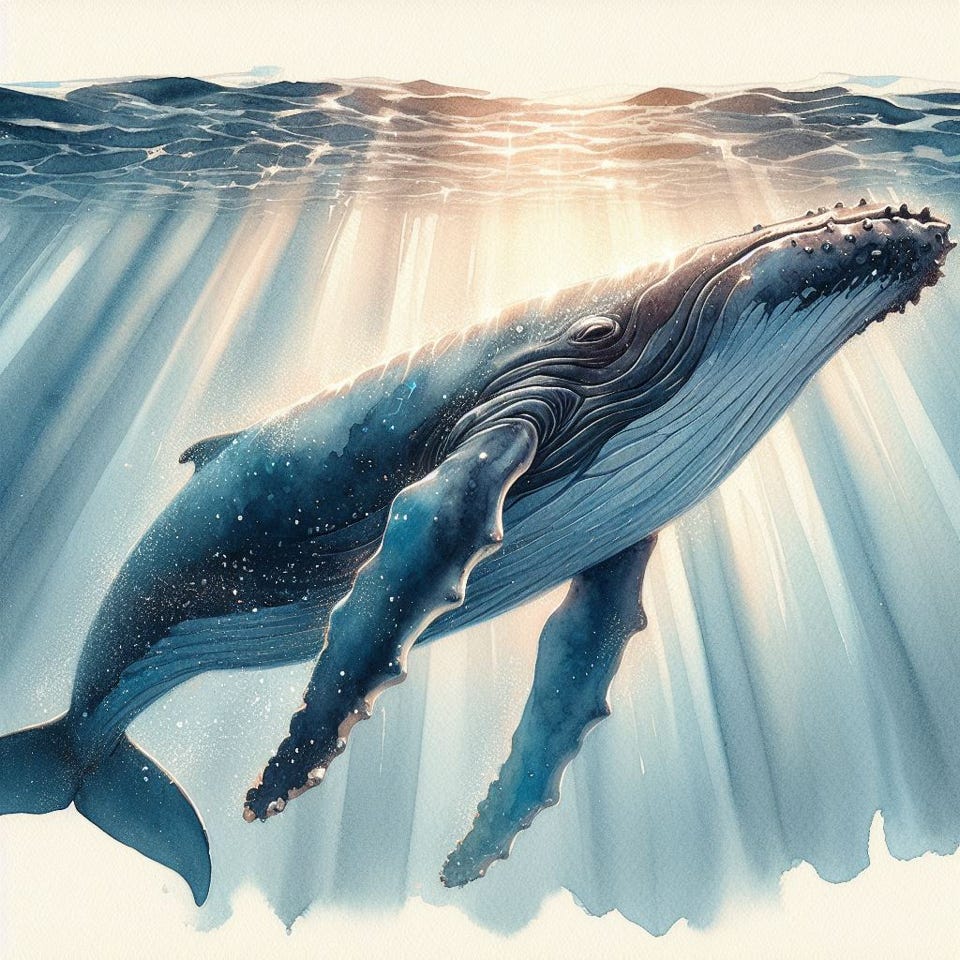 Jolie aquarelle d’une baleine à bosse créée pour vous par Copilot IA………..