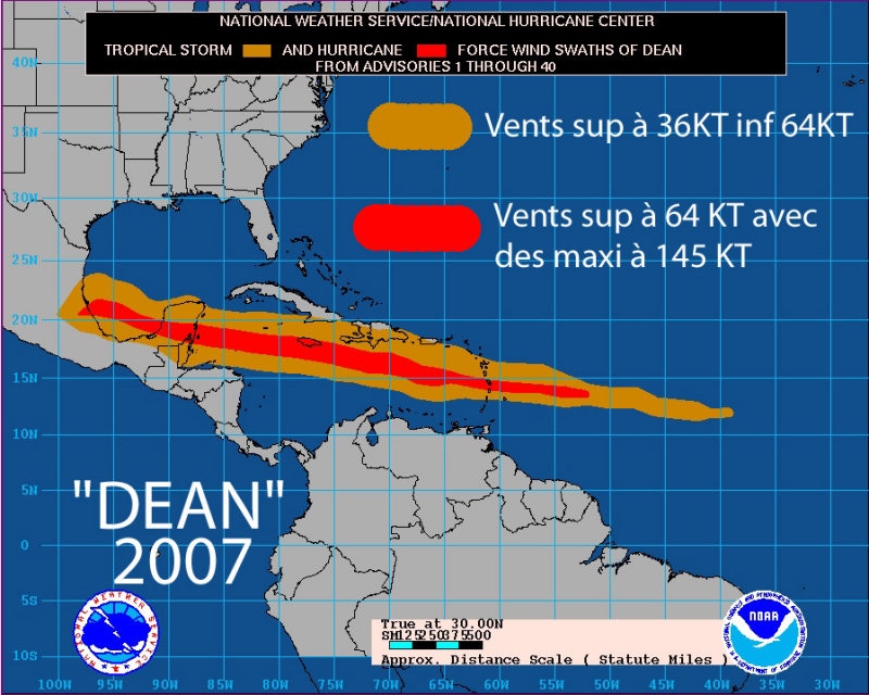 Trajectoire de Dean dans la Mer des Caraïbes.