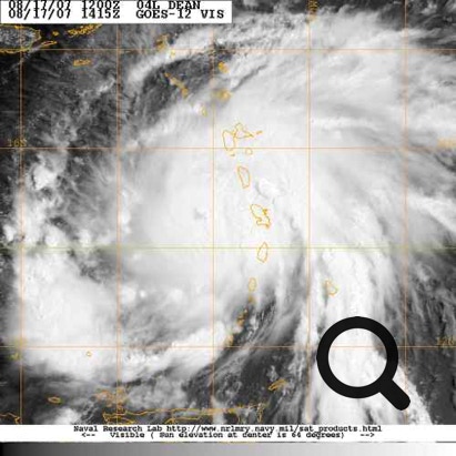 Cyclone Dean, image satellite GOES du 17/08/2007 à 12:00 GMT.