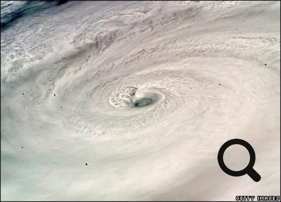 À six heures du matin, le jour semble se lever et nous sommes au plus fort de l'ouragan ! 180 km/h ? 200 km/h ? On essaie d'entrebâiller la porte pour voir ce qui se passe dehors . La maison et la terrasse sont crépies de feuilles déchiquetées.