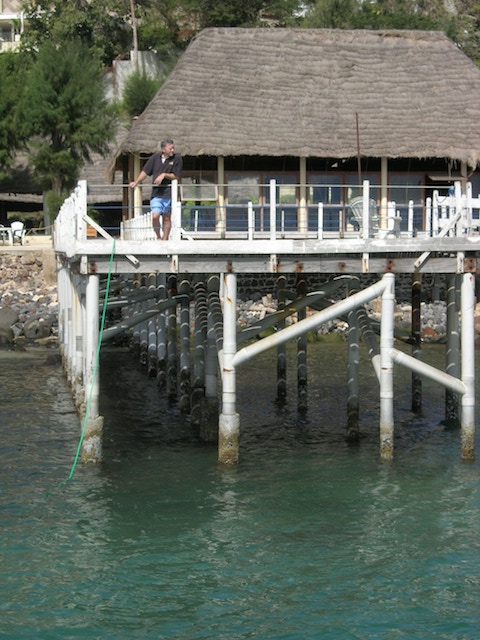 A Salinas - Porto Rico, nous sommes bien installés dans la petite marina toute en bois et l'humeur est au bricolage. Un tour chez le shipchandler (un plaisancier allemand tombé amoureux du bled) et un coup de scie cloche dans le cockpit termineront un joli montage d'alimentation directe en eau de ville.
