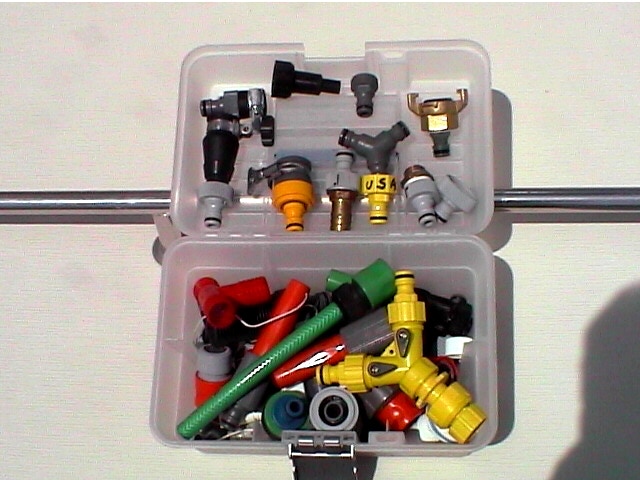 Nous avons une collection de longue date des tous les types de connecteurs pour prises d'eau des ports, mais elle n'arrête pas de s'agrandir, nous y avons ajouté la série aux pas de visses US. Revendez votre bateau, mais jamais la collection de connecteurs électriques et hydrauliques, c'est le travail d'une vie de marin et laissez-la aux enfants en héritage. Nous avons déniché plusieurs modèles tous terrains en forme de poire caoutchouc avec colliers de serrage pour les cas désespérés.