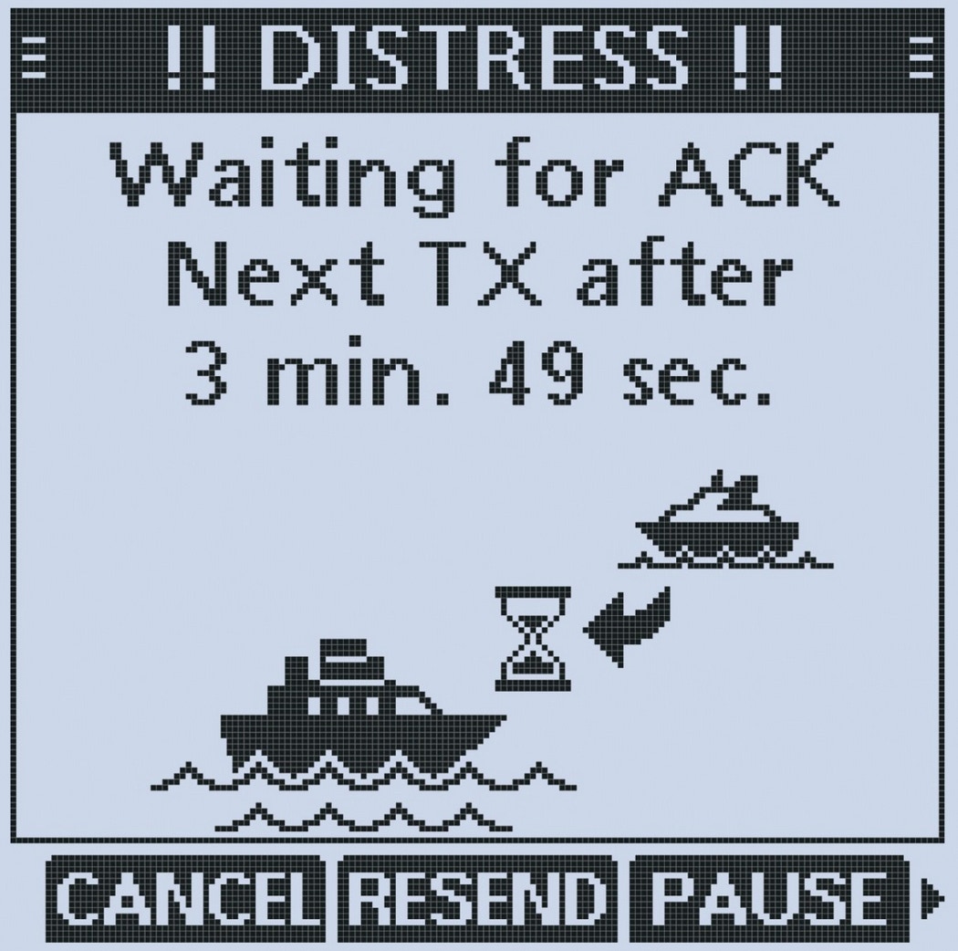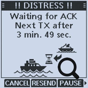 Ecran VHF en attente d’un Acknowledgment d’une alerte DISTRESS.