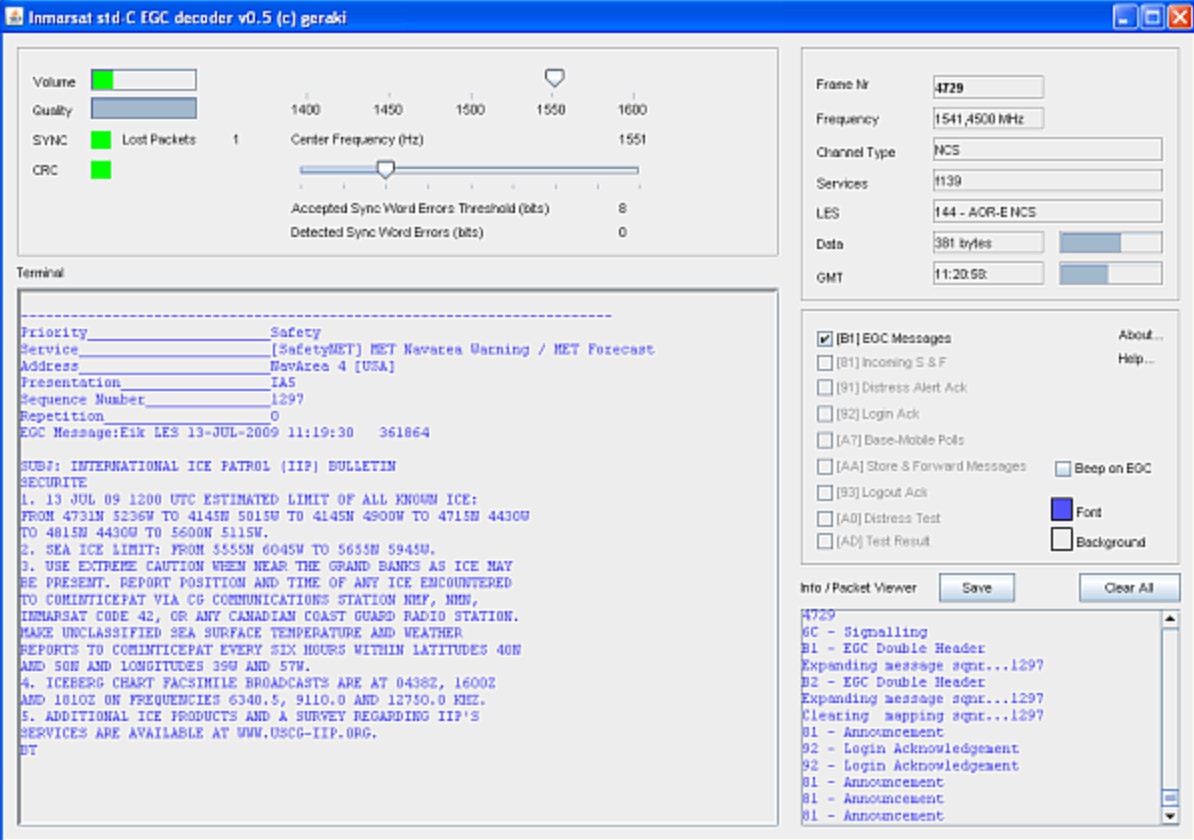 Exemple de Meteo Warning via le sat. AOR-E d’Inmarsat