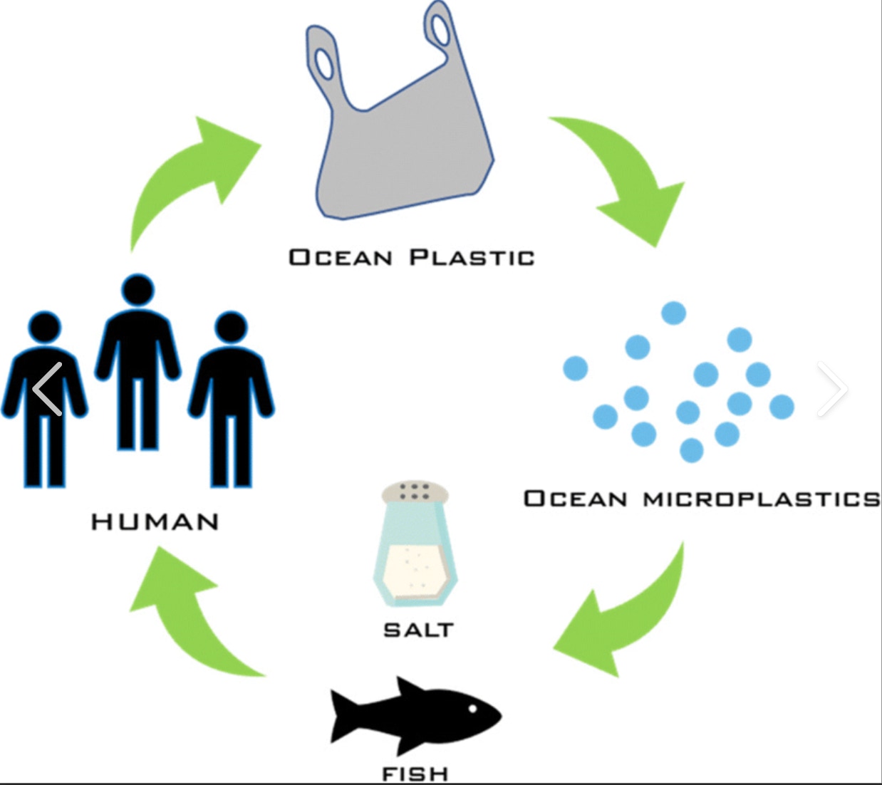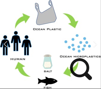 Une fois dans l’océan, la plupart des débris plastiques a tendance à se décomposer en petites particules sous l’effet des UV. Celles-ci peuvent être confondue avec de la nourriture par les animaux marins. L’ingestion de plastiques peut tuer ces animaux par empoisonnement, blocage digestif et autres troubles.