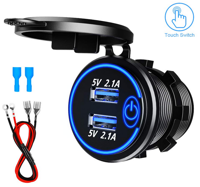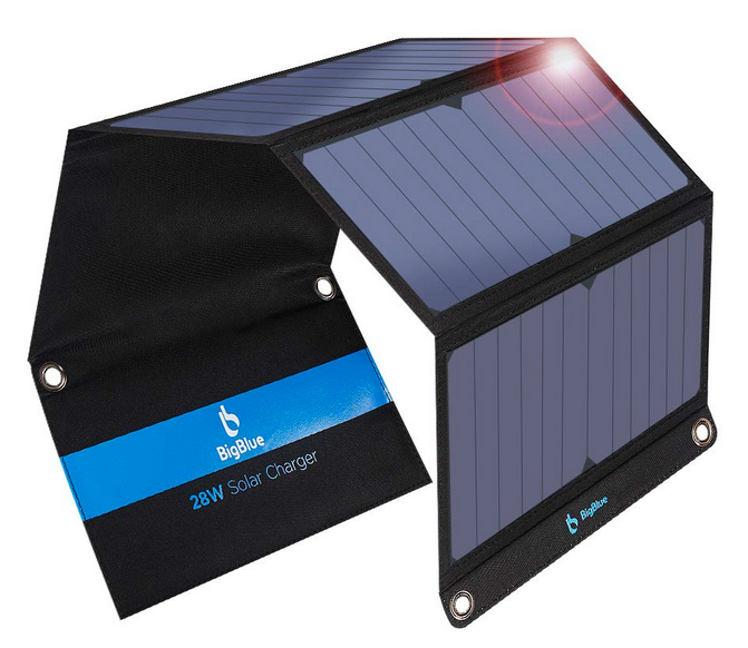 Prise 12V>5V + batterie externe + panneau solaire 5V.