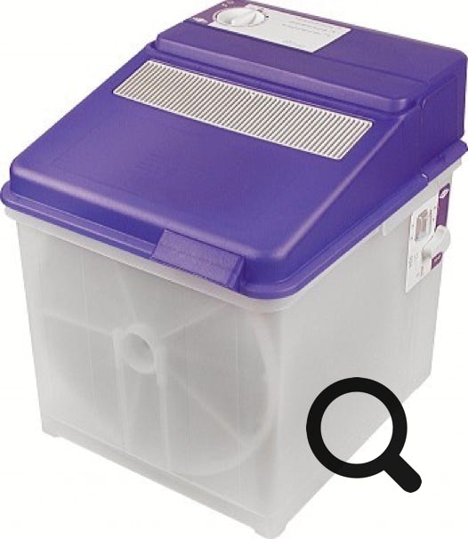Le type a est une caisse en plastique avec un tambour. L’eau est chauffée à maximum 60°C et les commandes sont très simplifiées. Absence d’essorage, mais résistance de séchage. On est aux limites du vrai lavage. Dimensions : H52 x L46 x P57 cm. Par exemple la Carad MB40TR.
