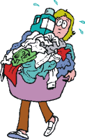 Même si sous les tropiques, la tenue vestimentaire est réduite, le tee-shirt est rapidement trempé de sueur. Outre les vêtements, il faut bien laver les draps de bains salés, les draps squamés, les taies odorantes, les torchons maculés, les housses du carré auréolées, etc… Le sac à linge du bord déborde rapidement si le mouillage se prolonge.