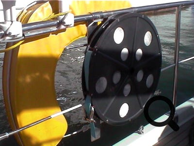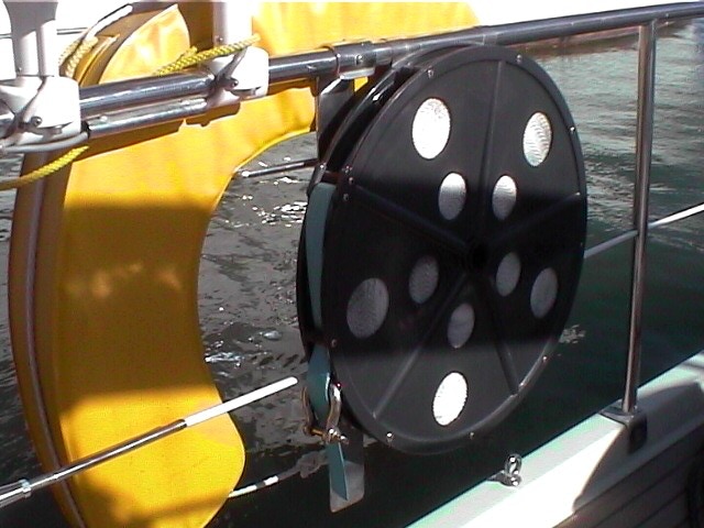 Compteur de chaîne - Commentaires : le guindeau avec compteur de chaîne anciennement fabriqué par POCHON à La Rochelle. Pratique, il permet de voir la longueur de chaîne sortie sur un affichage à la barre ou ce qu'il reste à rentrer lorsque l'on actionne le guindeau depuis le cockpit. D'autres modèles existent sur le marché (notamment Quick).