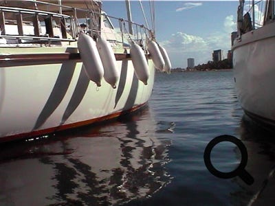 Aux USVI, il y a de sérieux corps-morts gratuits partout dans les baies. Aux Antilles, les boat-boys vous en louent un pour la nuit. Ces corps-morts sont souvent près des rochers ou de la plage. Je plonge toujours pour voir l'état du corps-mort et de sa pendille, c'est plus prudent. A Union, la chaîne était tellement corrodée qu'il ne restait que 3 mm de métal ! En cas de doute sur le corps-mort et en cas de vent, je descends l'ancre et 20 m de chaîne en tas sur le fond. Cela dégage également l'étrave pour les mouvements de la pendille.