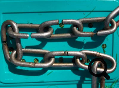 15 m Chaîne de 8 mm en acier galvanisé - Commentaires : c'est le minimum syndical et déjà pesant à manipuler en cas d’affourchage.
