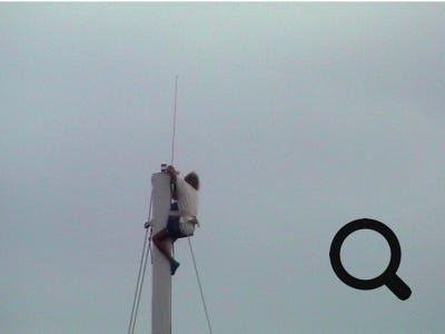 - Mais qu'est-ce qu'il fait le Monsieur en haut du mât ?