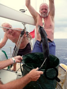 Les pêcheurs ne sont pas toujours les premiers servis ... (lors de la transat de juin 2007 d'Escape, avec l'aimable autorisation de Jef, skipper).
