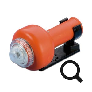 La loupiote en tête de perche est indispensable pour être utile de nuit. Sur le modèle Plastimo, la perche est bien faite, mais la loupiote est un peu bas de gamme. On aurait souhaité un flash clignotant. En utilisant un étui de drapeau, il y a un risque de détachement de la loupiote. Une simple goupille fendue évite le problème. L' « interrupteur » de la loupiote est attaché à l'étui du drapeau et s'arrache automatiquement à l'usage.