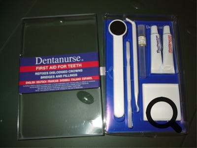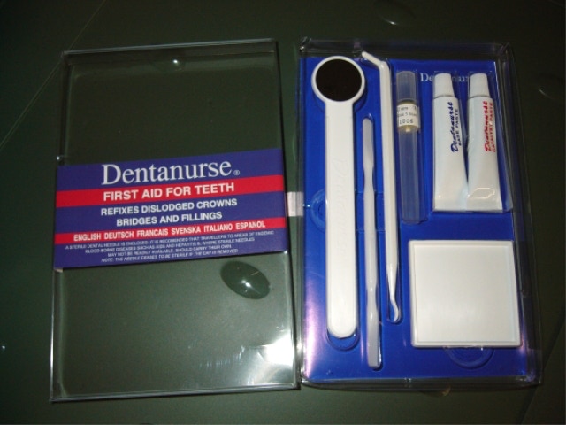 Un petit kit original des premiers soins dentaires est commercialisé par la firme anglaise : Dentanurse. Il permet la réparation d'une obturation et le pansement d'une dent cassée. Le kit comprend un anesthésiant local, pansement et composite de soin, quelques outils d'application.