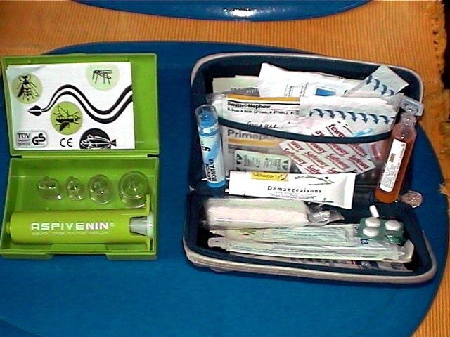 C'est une petite trousse compacte pour bobos légers : petites blessures, gastro, allergie, etc. Elle contient également l'ASPIVENIN, utile contre les piqûres d'insectes (testé) et éventuellement morsures de serpent (pas testé !).