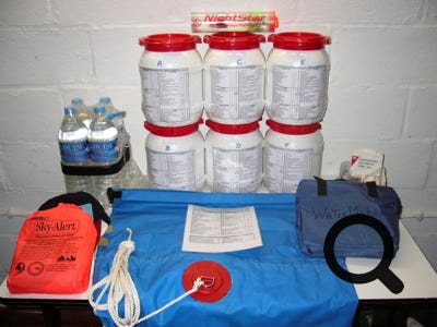 Le matériel de survie avant de rentrer dans le sac étanche.