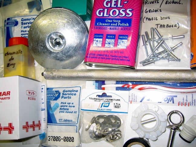 Suivant l'analyse des points faibles de votre fier navire, vous vous ferez une petite liste de pièces de rechange mais une fois l'Europe quittée, ne comptez pas trop sur les ressources locales pour vous procurer des pièces. Il reste toujours la solution de l'expédition par courrier express (genre Fedex ou DHL), mais attention à la facture d'expédition; le transport et les taxes d'importation peuvent dépasser la valeur des pièces. Les délais sont souvent longs et le colis reste souvent coincé à la douane de destination.