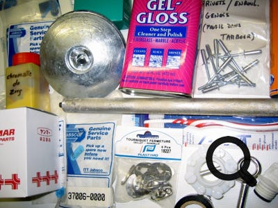 Cela va faire des centaines d'articles à stocker dans le bateau. Et régulièrement vous ne saurez plus où telle ou telle chose se loge. Donc un tableau Excel inventoriant le matériel est vivement conseillé. Il permet en outre de tenir un stock des pièces.