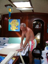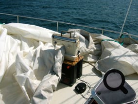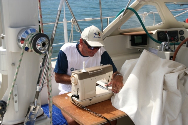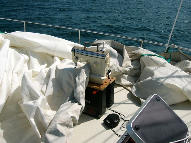 Quand on vous disait que le métier de plaisancier touche à tout. Cela épate toujours les ignorants des choses nautiques que les marins savent coudre. Je prends plaisir non pas à coudre, mais à réaliser des choses au départ d'un bout de tissu et de fils.