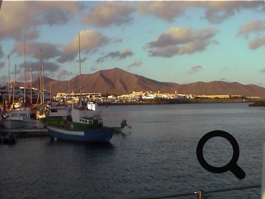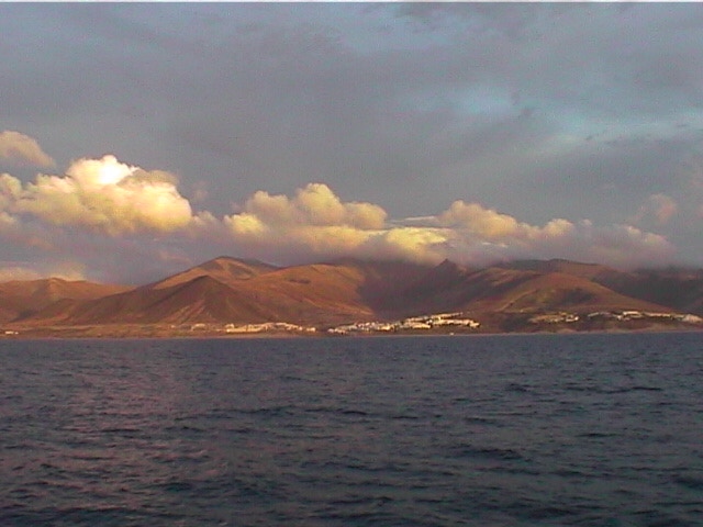 Nous passons la nuit au mouillage derrière la jetée du port des ferries de Corralejo et comme d'habitude le Captain plonge pour vérifier la tenue de l'ancre. Stupéfaction, le fond n'est qu'une gigantesque dalle rocheuse sur laquelle pose notre ancre et celles de 6 bateaux autour de nous. Nous ne tenons que sur le poids de la chaîne et de l'ancre. Heureusement le vent est faible mais s’il monte durant la nuit, nous devrons quitter en hâte ce faux abri. Le lendemain matin, nous nous faisons durement klaxonner par le ferry qui estime ne pas avoir assez de place pour faire sa manœuvre alors qu'il est encore à plus de 20 mètres de nous. Nous l'ignorons superbement, mais le regard en coin et la clé sur le contact moteur.