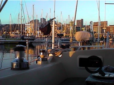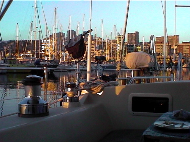 Grand nettoyage et polish des chromes (2 jours pour le polish rontudjûû). Et petites récréations quotidiennes : le shopping et la découverte de la ville à byciclette pour Catherine et un petit tour avec Caramelita (annexe à voile) dans le port pour le Captain.