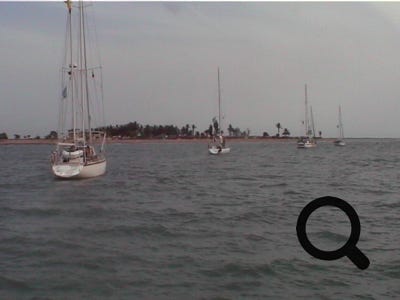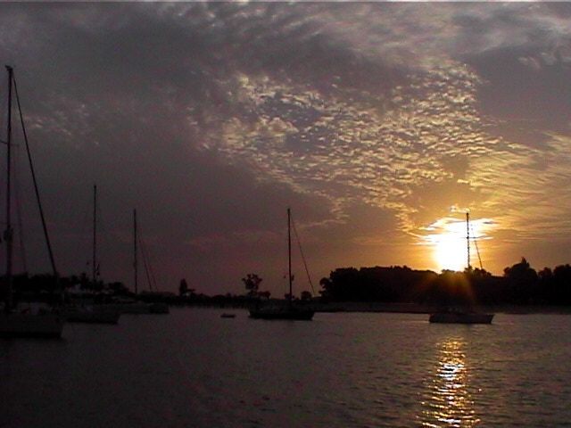 Ce soir, c'est la veillée d'armes. Demain, les plus petits bateaux partent à 08h00. Catherine part avec Michel de "If" pour prendre livraison des 800 kg de vivres que nous avons commandé pour le Rallye chez le libanais. Il a tenu parole et les vivres sont bien arrivés, correctement emballés à 20 km de notre point de mouillage. Il faut louer 2 camionnettes (des 504 breaks sans fenêtres ni tableau de bord !) et ramener le tout au campement. Le partage des commandes se fait sur la plage, armés de lampes et d'une balance. Le comportement humain des plaisanciers n'ayant rien à envier au désordre maraîcher africain. Pénible soirée.