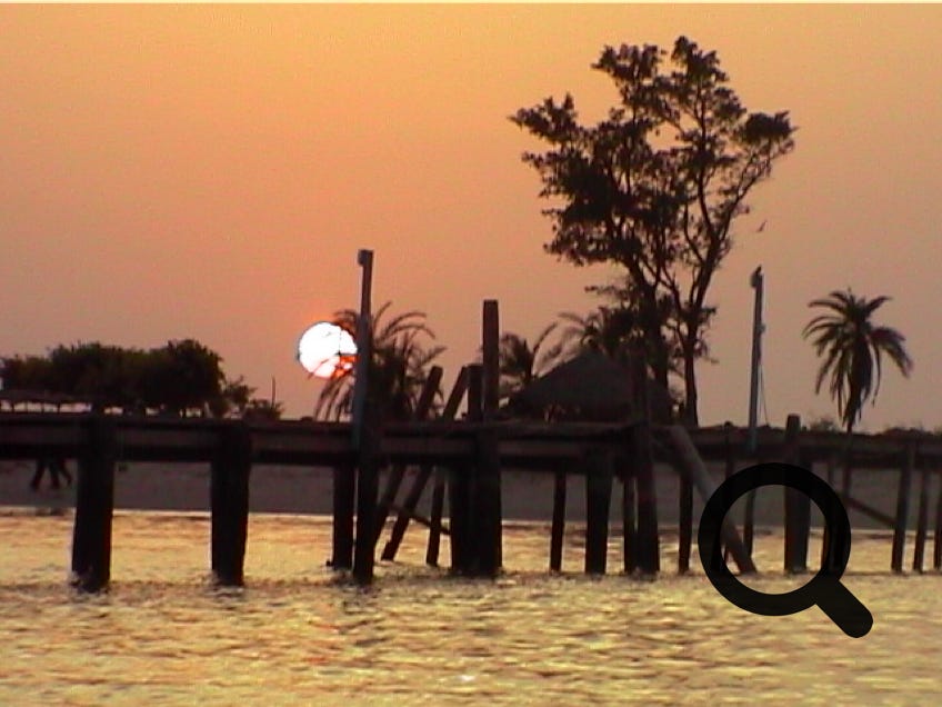 Nuit des bestioles devant le campement. Nous sommes envahis par toutes sortes de bestioles bizarres ayant au moins en commun une paire d'ailes. A partir de là toutes les variations sont permises : plusieurs paires, des pattes sauteuses, des antennes, des dos ronds, parfois le tout en même temps. Certaines plus vicieuses se permettent de puer le formol quand on les écrase. Il faut se laver les mains. Vivre dehors après le coucher du soleil est difficile sur le Siné Saloum, souvent la seule solution est de se planquer sous sa moustiquaire avec son bouquin et faire semblant de ne pas voir les bestioles qui crapahutent sur le voile de tulle. On se couche tôt sur le Saloum et on profite le la fraîcheur de l'aube.