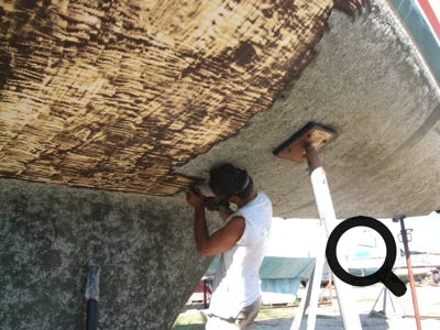 Michel vient l'épauler pour la phase finale. Armés de ponceuses, ils ôtent les dernières traces de peinture et Caramel retrouve ses dessous blancs. La dernière phase est expédiée. C'est fou ce que peindre est plus rapide que gratter.