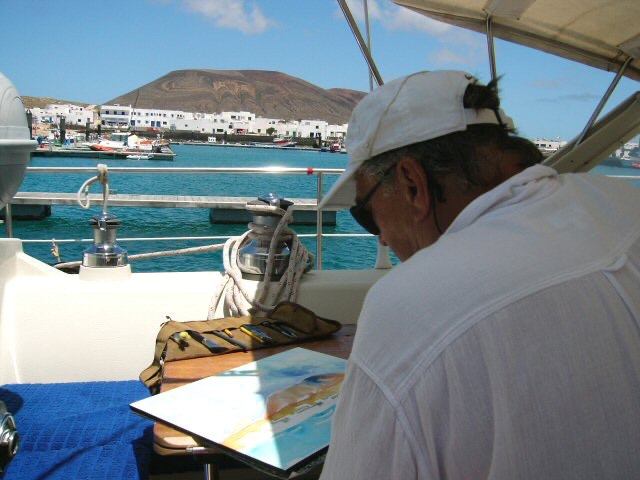 Catherine arrive de Paris en fin de journée. Nous avons juste le temps de laver le pont pour la recevoir. Elle a loué une auto à l'aéroport et fait le guide pendant deux jours pour faire visiter à l'équipage le Parc national de Timanfaya (volcans), la maison de César Manrique et les vignobles de la vallée de la Geria. Les must de l'île.