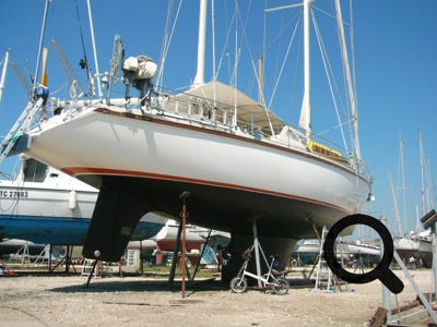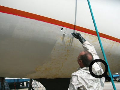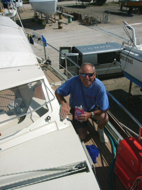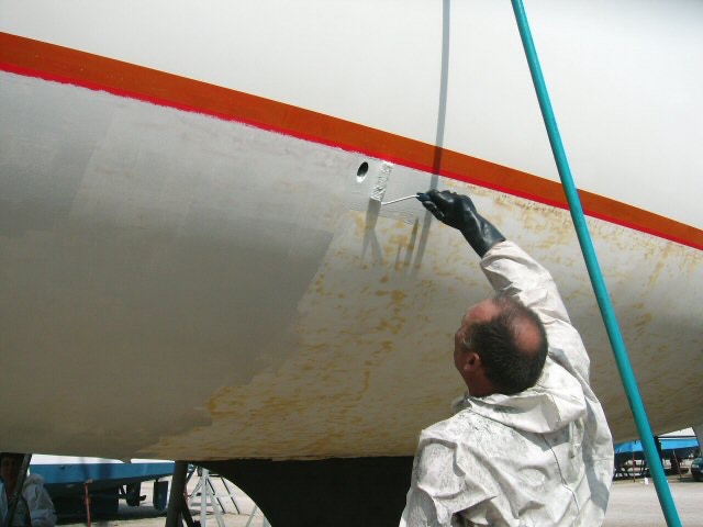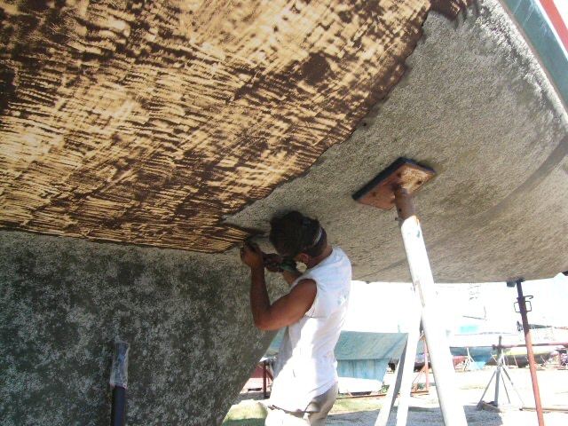 La journée de dimanche nous voit arriver au chantier de Navy Service à Port Saint Louis du Rhône. Car tout n'est pas terminé. Caramel a droit cette année à un traitement spécial. Le grattage de sa carène. Déjà neuf couches d'antifouling et l'année dernière, des plaques se détachaient par endroit jusqu'à la coque. Comme nous partons pour quelques années, il est judicieux de faire ce travail maintenant plutôt qu'en route afin de repartir sur une bonne base. C'est le cadeau de départ de Caramel.