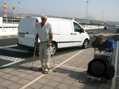 Benjamin est effondré au propre et au figuré car il vient de buter sur le pont de Caramel (encore une victime des pieds nus à bord) et s'est cassé le petit orteil droit et probablement le pied gauche qui s'est retourné. Catherine, brancardière-infirmière, l'emmène dans une clinique privée, toujours avec le camion de Jacques. Le diagnostic est incertain pour le pied gauche. Il ne peut plus marcher qu'avec des béquilles et sans poser le pied gauche. Nous l'emmenons le lendemain à l'aéroport pour prendre l'avion en chaise roulante et se faire soigner convenablement en France.