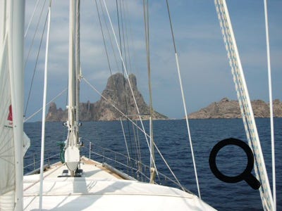 La descente des Baléares continue gentiment, Majorque et Cabrera sont vite doublées. Nous voici déjà à Ibiza, le temps de s'y arrêter un peu, pour saluer des amis et nager un peu à Espalmador, l'île aux bains de boue sulfurée. Le mélange des genres humains est toujours aussi contrasté à Ibiza ... Mais ici non plus, il n'y a pas beaucoup de touristes cette année.