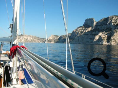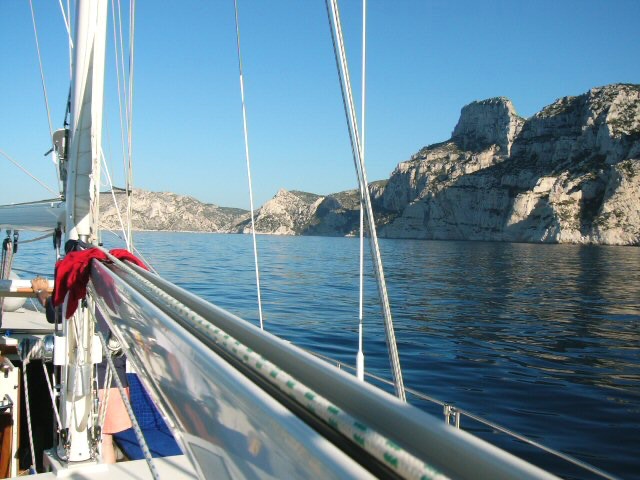 Qu'il est bon de ne rien faire, de confier au pilote et à la brise Yanmar (moteur) le soin de nous amener à Port Miou, la première calanque de Cassis. Une jolie lumière, un cadre enchanteur, un bon dîner dans le cockpit arrosé par l'excellent blanc de Provence du Jas d'Esclan de mon cousin Matthieu. La vie serait-elle douce ? Enfin se détendre.