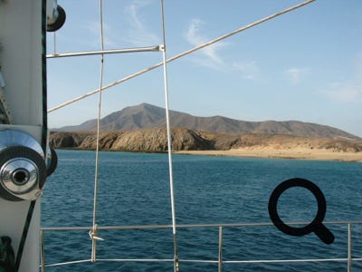 Il faut s'arracher des endroits sympas. Heureusement tout le monde s'en va en même temps, Jacques rentre quelques semaines à Genève, Claude prend l'avion pour Paris. Le bateau de Jean est opérationnel. Il va repartir à Hendaye, faute de copains sur le ponton. Les escrocs sont en tôle. Caramel peut donc filer sur Lobos, cette petite île au nord de Fuerteventura. Catherine n'aime pas trop cet endroit qui nous a laissé des souvenirs venteux et rouleurs au dernier passage. L'aridité de ce tas de lave n'est pas hospitalière, mais c'est sous l'eau que cela se passe.