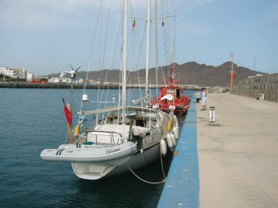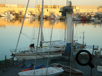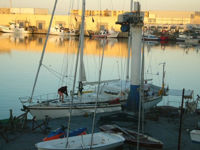 En attendant, Caramel est le seul bateau visiteur. Nous accostons le long d'un vilain mur de béton. Devant nous, un bateau de sauvetage de haute mer, occupé par le marin de garde avec qui nous taillons une bavette. En Espagne, c'est la Croix Rouge (Cruz Rojo) qui a le secours en mer dans ses fonctions. Ce poste est le plus proche de la côte marocaine, 90 kilomètres seulement. C'est peu mais beaucoup trop pour les esquifs qui se risquent au passage sur une mer souvent agitée.