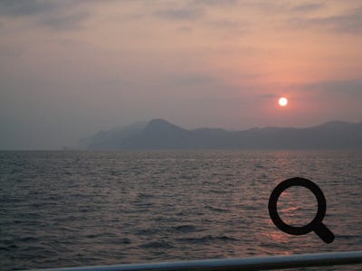 02h45. Incroyable. La plus grosse étoile filante que j'ai jamais vue plonge dans l'Est. Elle est tellement grosse que j'ai nettement vu pendant 2 secondes une queue de flamme derrière la boule de feu. Caramel a aussi une queue phosphorescente : son sillage dans le zooplancton est couleur de lune.