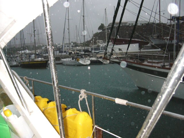 Nous sommes témoins ce matin d'un évènement rare : il pleut sur Lanzarote. Durant 20 minutes, une averse tombe dru, accompagnée du tonnerre.