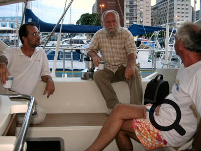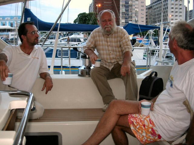 Philippe Bourgeat est arrivé à Salvador avec Albert Brel, journaliste à Voile Magazine. Il nous appelle en début d'après midi par téléphone pour connaître notre heure d'arrivée estimée, demain jeudi.