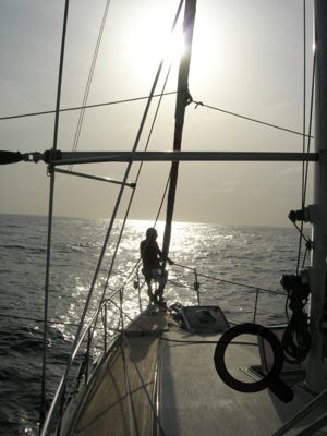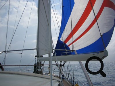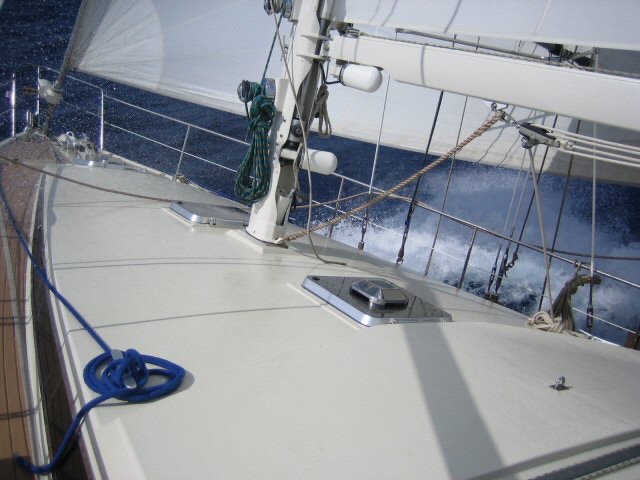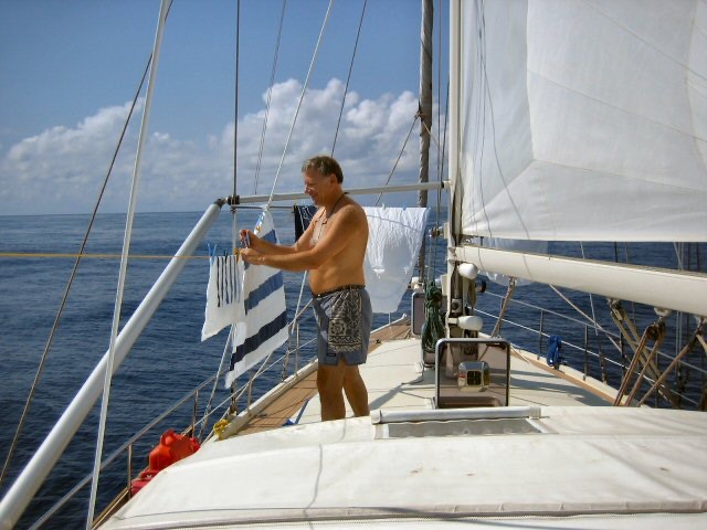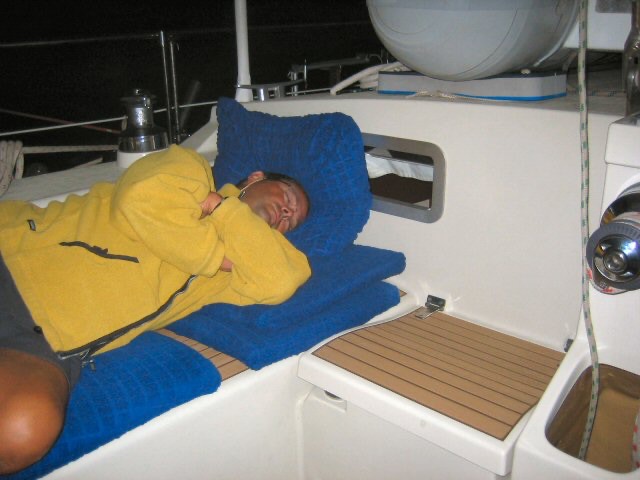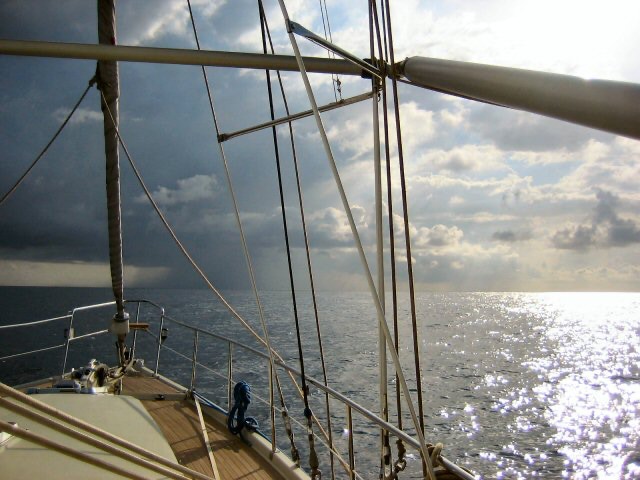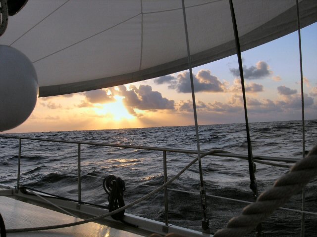 Le vent vient maintenant par le travers. Vingt petits nœuds d'un alizé régulier qui souffle sans fléchir de nuit comme de jour. Je commence à me sentir vraiment bien et de ne plus ressentir ce que j'appelle le « stress du propriétaire », syndrome qui affecte surtout les skippers (1/2 cerveau pour soi et 1/2 cerveau pour le bateau). Les équipiers étant généralement affranchis de cette pression et gardant une relative synchronisation de deux hémisphères.