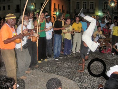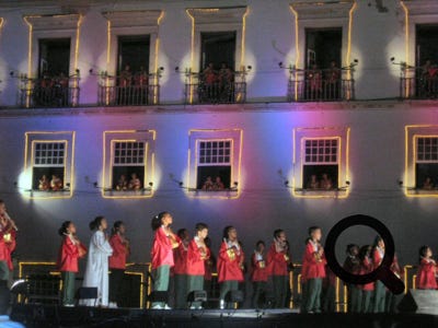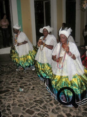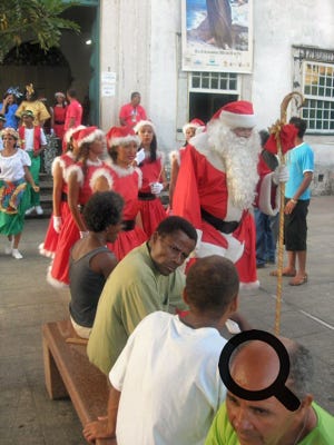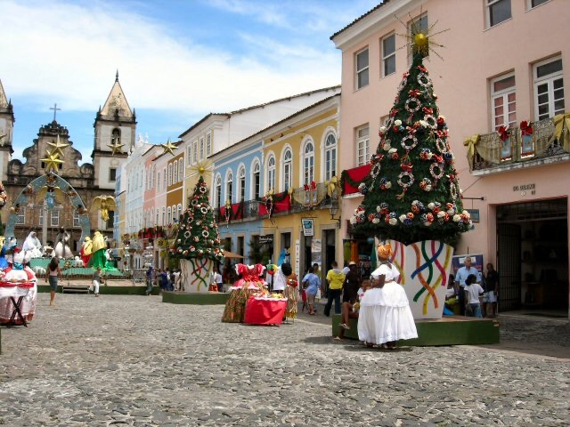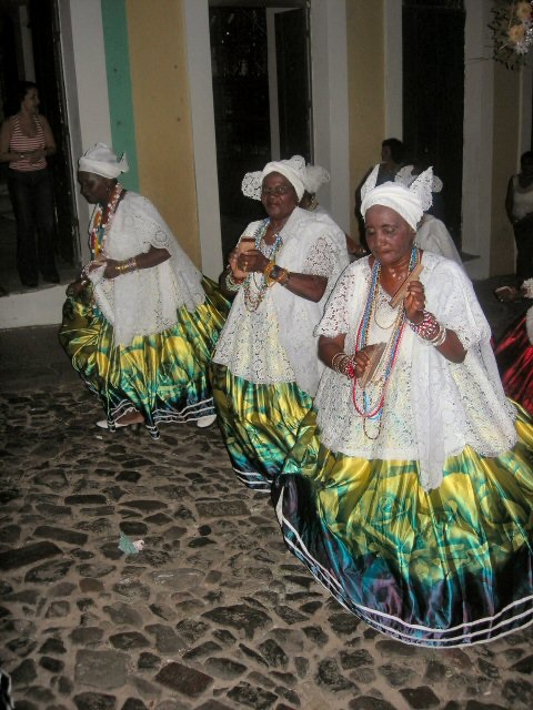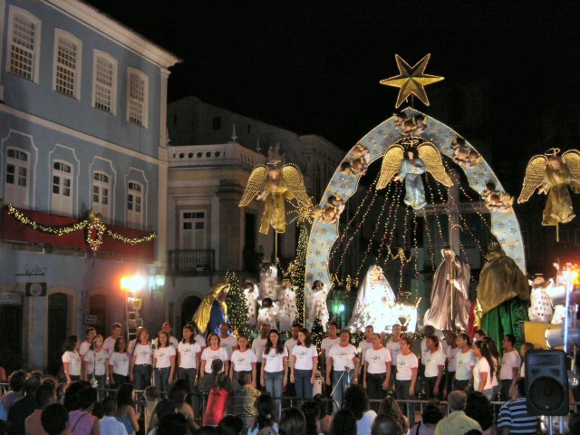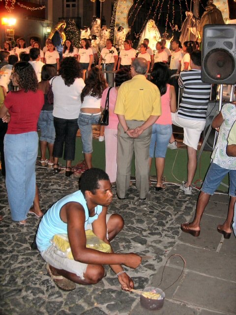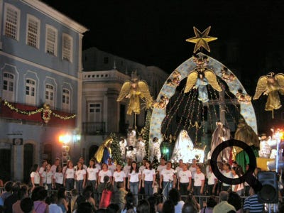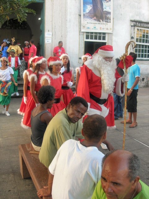 En cette période d'avant Noël, Salvador de Bahia vit une activité artistique et religieuse intense. Tous les soirs, le Pelourinho (vieille ville) est le théâtre de multiples spectacles de chants et de danses à la mode brésilienne. Dès notre première soirée, nous assistons à cinq mini-concerts sur des estrades construites sur les places et rues de l'ancienne ville.