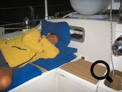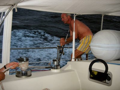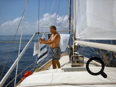 Et le Capitaine dans tout cela ? Disons, qu'il se fait transparent pour que l'équipage puisse vivre pleinement sa transat. Je profite de toutes ces bonnes volontés pour prendre la distance qui sied au « Pacha » du navire.